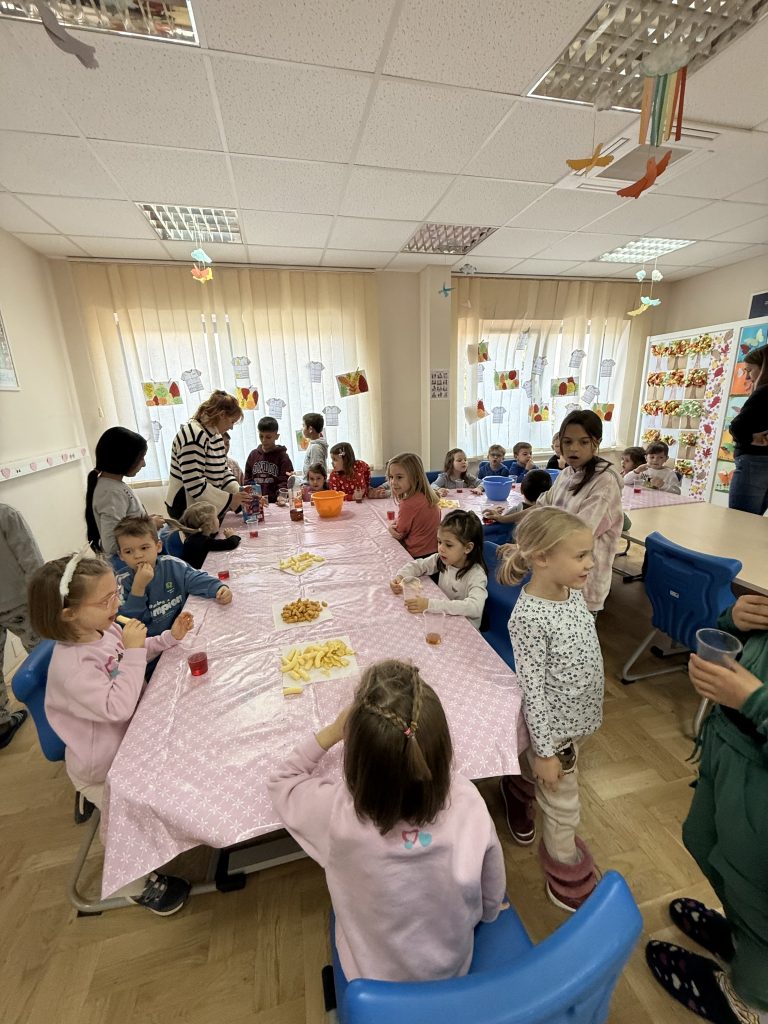 Nakon kreativnog dijela slijedila je mala zakuska s grickalicama i sokom, koja je djeci pružila priliku za dodatno druženje u opuštenoj, blagdanskoj atmosferi. Radionica je završila uz puno veselja, ponosa i božićnog duha – dokaz koliko zajedničke aktivnosti mogu povezati djecu i stvoriti lijepe uspomene.