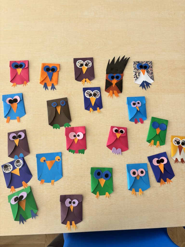 Za kraj susreta, djeca su sudjelovala u kreativnoj radionici izradivanja sove, nadahnutoj pročitanom pričom. Nastali su brojni veseli i maštoviti radovi koji će krasiti prostorije poludnevnog boravka tijekom cijelog Mjeseca knjige.